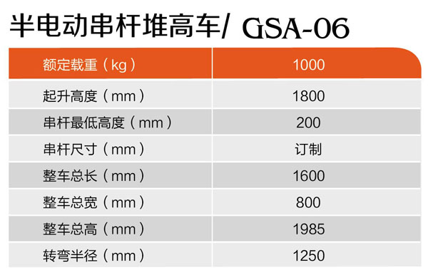 半電動(dòng)串桿堆高車(chē)GSA-06