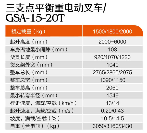 三支點平衡重電動叉車GSA-15-20T
