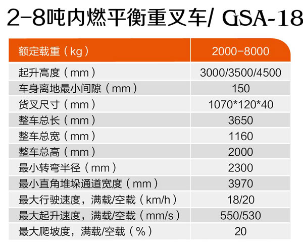 2-8噸內燃平衡重叉車GSA-18
