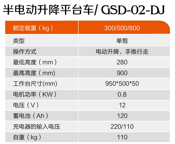 半電動(dòng)升降平臺(tái)車GSD-02-DJ