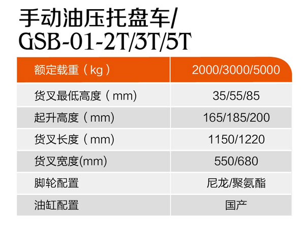 手動油壓托盤車GSB-01-2T/3T/5T