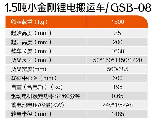 1.5噸小金剛鋰電搬運(yùn)車GSB-08
