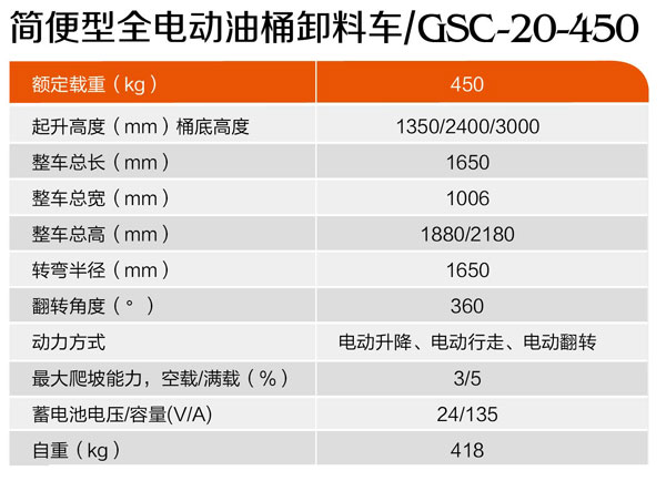 簡(jiǎn)便型全電動(dòng)油桶卸料車GSC-20-450
